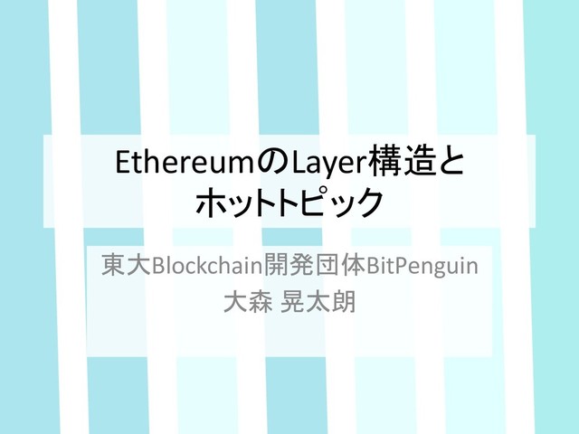 EthereumのLayer構造と ホットトピック 東大Blockchain開発団体BitPenguin 大森 晃太朗