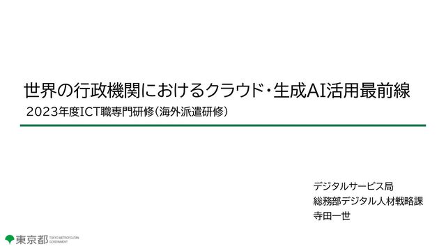 州職員とAmazon、Microsoft、Starbucks、Uber、Lyftなどの民間企業が官民連携して新型コロナウイルス感 染症に立ちむかった。 ※ 官民の強みを活かした連携 州職員は州内の約800万人にワクチンを接種するため、接種計画を策定。 民のチームは技術的支援として、クラウドサービスを活用し接種予約のチャット ボット・コールセンター(Amazonなど)やワクチン検索ツール(Microsoft、 Starbucksなど)を立ち上げたり、交通手段がない人にはライドシェア(Uber、 Lyftなど)による交通手段の確保が行われた。 ※ 州職員が考える誰一人取り残されない社会の実現に必要なこと 官民が連携しそれぞれの強みを生かしてできる限りの最善を尽くすこと。 ※ Department of Health. “COVID-19 Vaccine Action Command and Coordination System (VACCS) Center Final Report”.Washington State. 2021-10.https://doh.wa.gov/sites/default/files/legacy/Documents/1600/coronavirus/823-003_COVID-19-Vaccine-Action- Command-and-Coordination-VACCS-Center-Final-Report_100121.pdf, (参照 2024-02-07). 渡航先一覧 AWS re:Invent 02
