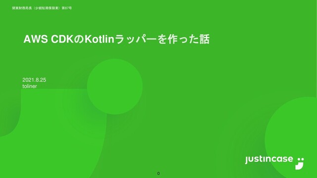 関東財務局長(少額短期保険業)第87号 AWS CDKのKotlinラッパーを作った話 0 2021.8.25 toliner