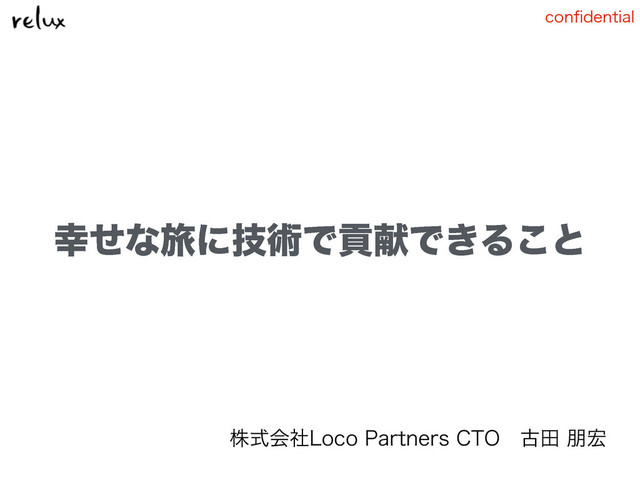 2015/10/22に株式会社Loco Partners主催による旅と技術のつながりを語る会 〜エンジニアも旅に出よう〜を行いました! その時の資料です。 旅人エンジニア堀内さん、株式会社トレタ増井さんと楽しいイベントでした。ありがとうございます!!