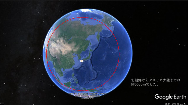 北朝鮮からアメリカ大陸までは約5000kmでした。 北朝鮮か羅アメリカ 北朝鮮からアメリカ大陸までは 約5000㎞でした。