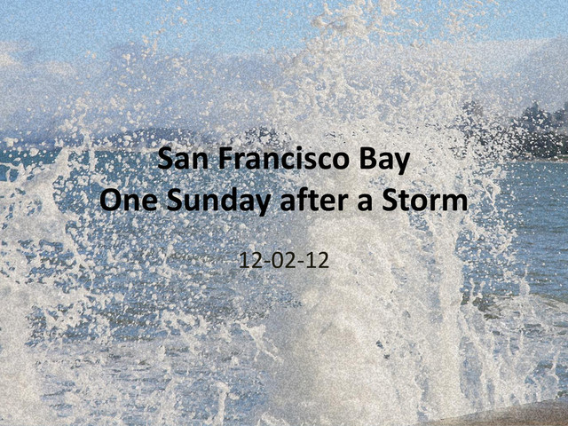 The winds and rain abated and the sun emerged to shine on little kids splashing in the puddles of Crissy Field. The Sea still rolling and crashing to the delight of joggers and walkers alike.