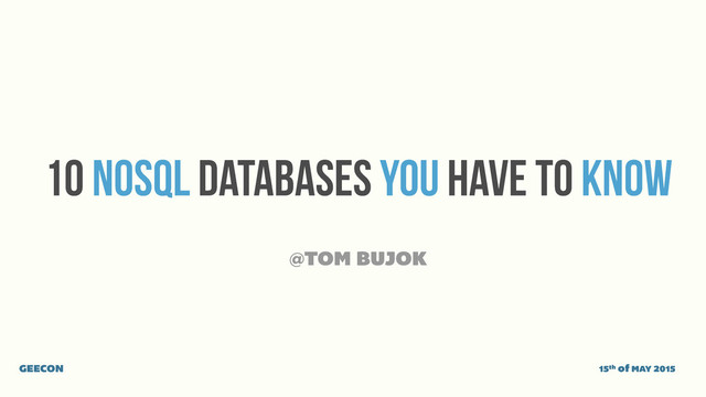 No prior knowledge is required. Come by to learn more about Cassandra, Redis, HBase, MongoDB and many others!