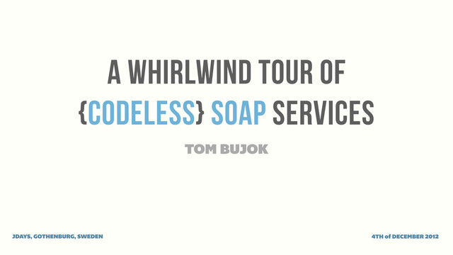 SOAP Web-Services are everywhere. There is a plethora of Java frameworks supporting SOAP but most of them follow the paradigm of the explicit or implicit code (stubs) generation. Handy as it may seem at the beginning, it can also be redundant and cumbersome. Problems occur when a single WSDL/XSD change triggers a full recompilation and redeployment of the app or when many versions of the same service have to be maintained within one code-base. The trickery that is then applied, like postfixing class names, adding version numbers to packages, sharing common classes, etc., does not scale well, causes a rapid code-base growth and is clearly against the "best practices". Finally, marshalling and unmarshalling the whole payload may also cause a significant performance deterioration. This session will be a critical whirlwind tour of SOAP Web-Services reviewing the existing solutions and emphasizing some of the biggest drawbacks of the frameworks based on the code generation. It will rethink the idea of Java Web-Services refuting widely-accepted concepts that nobody reflects on anymore. It will also offer people handy tools to overcome above mentioned problems and prevent them from following bad practices. On the example of soap-ws, project authored by me, a completly different approach will be presented. soap-ws provides a lightweight Java Web-Services stack (based on Spring-WS) that handles the SOAP protocol "codelessly" on a purely XML level. Using soap-ws enables handy generation, transmission and handling of SOAP messages without the usage of stubs, no matter what flavors the WS client and server are (RPC,document; literal,encoded). You simply cannot miss out if you have ever used a Web-Service!