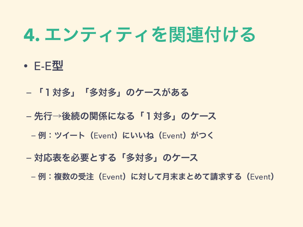 4. ΤϯςΟςΟΛؔ࿈͚Δ • E-Eܕ − ෳͷडʢEventʣʹର݄ͯ͠·ͱΊͯٻ͢ΔʢEventʣ