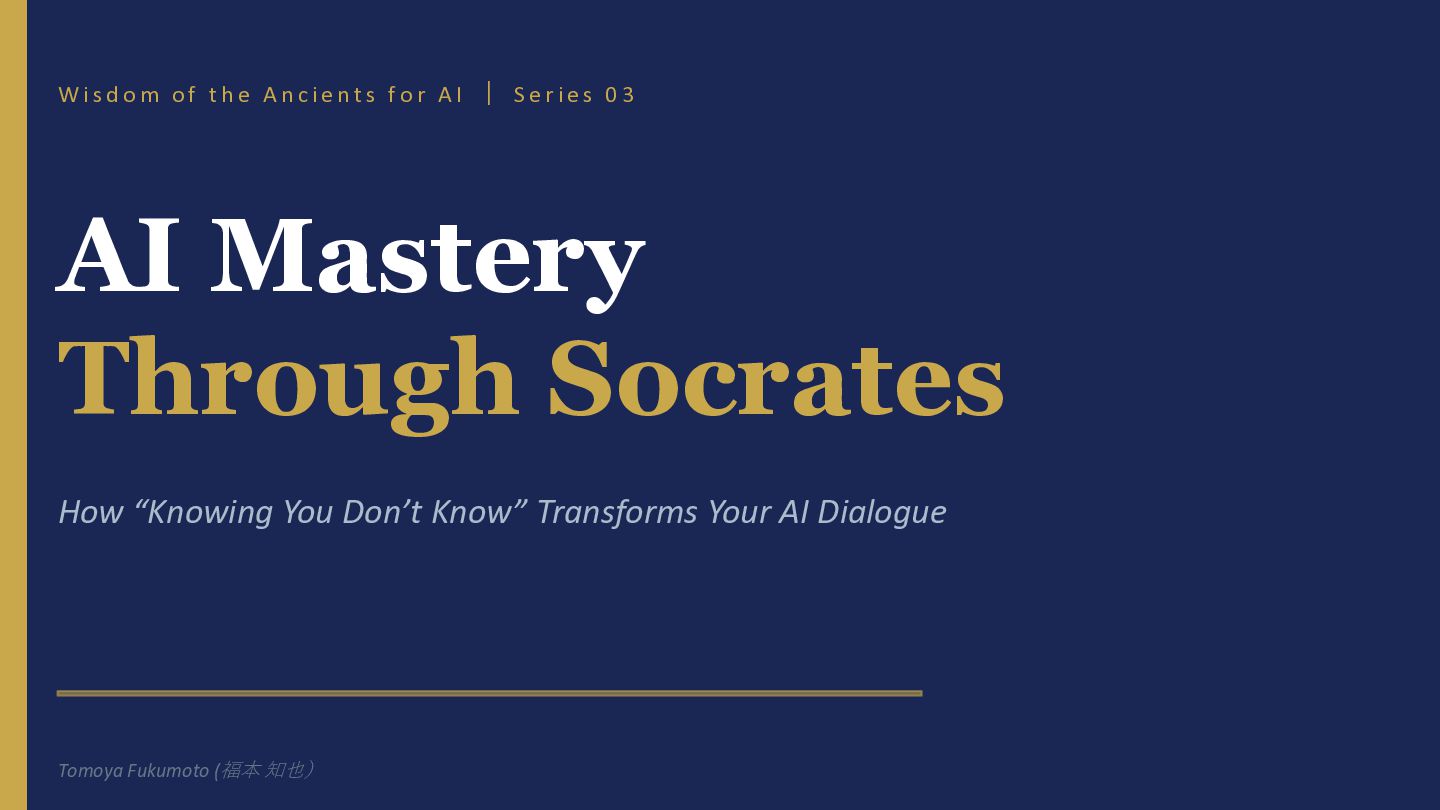 e A n c i e n t s f o r A I | S e r i e s 0 3 AI Mastery Through Socrates How “Knowing You Don’t Know” Transforms Your AI Dialogue Tomoya Fukumoto (福本 知也)