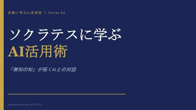 | S e r i e s 0 3 ソクラテスに学ぶ AI活用術 「無知の知」が拓くAIとの対話 Tomoya Fukumoto (福本 知也)