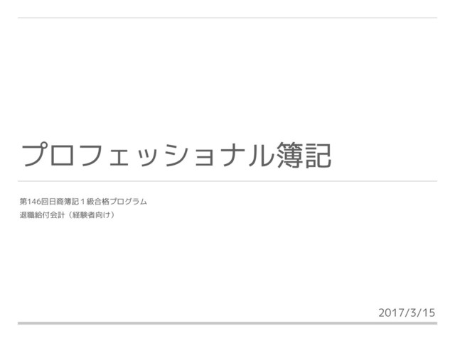 2017/3/15 プロフェッショナル簿記 第146回日商簿記1級合格プログラム 退職給付会計(経験者向け)
