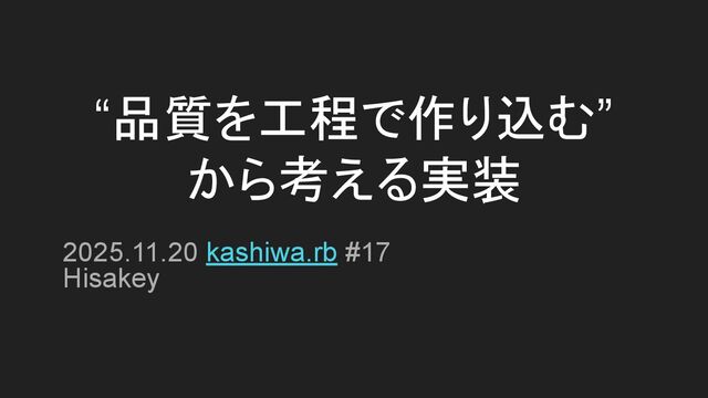 “品質を工程で作り込む” から考える実装 2025.11.20 kashiwa.rb #17 Hisakey