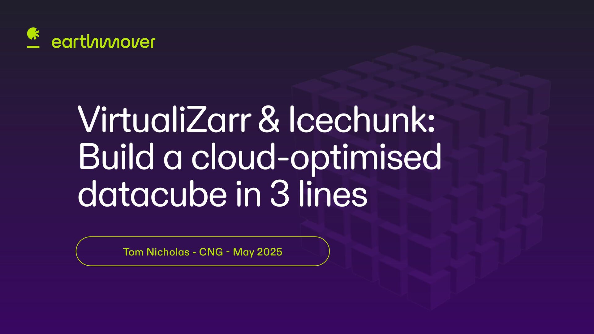 p-reduce problem, c a lled vi a vz.open_virtual_mfdataset(<filepaths>) • Serverlessly m a p vz.open_virtual_dataset over files a s AWS L a mbd a s • (M a x 1000 l a mbd a s a t once, so b a tch this) • Demo… vz.open_virtual_dataset( ) xarray.concat(…) 🧑💻 vz.open_virtual_dataset( ) vz.open_virtual_dataset( )