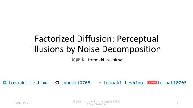 challenging problem, as it relies on perceptual grouping mechanisms that interact across different spatial scales. • 任意の画像でHybrid Imageを作る場合、補完的な画像が必要と なる • 画像同士の位置合わせも大事 • 補完画像をどう作るかはchallenging/open problem 2024/11/16 第62回 コンピュータビジョン勉強会@関東 ECCV2024読み会 8