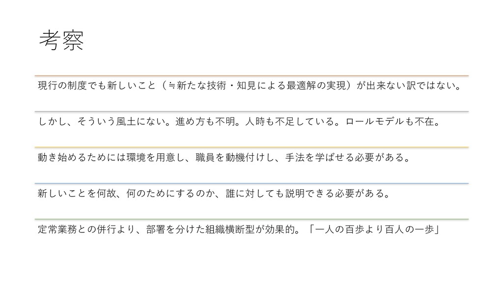 things. 新しいことに挑戦する。 Challenge Have a lot of time to THINK. 考える時間を多く持つ。 Think ENJOY everything. 全てを愉しくする。 Enjoy MOTIVATE the people. 様々な人を繋ぎ、動かす。 Motivate Observe DISCIPLINE, and review. 規律を守り、見直す。 Discipline Be a CITIZEN. 自らも市民の目線で考える。 Citizen