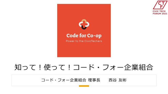 知って!使って!コード・フォー企業組合 コード・フォー企業組合 理事長 西谷 友彬