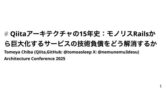 Tomoya Chiba (Qiita,GitHub: @tomoasleep X: @nemunemu3desu) Architecture Conference 2025 #