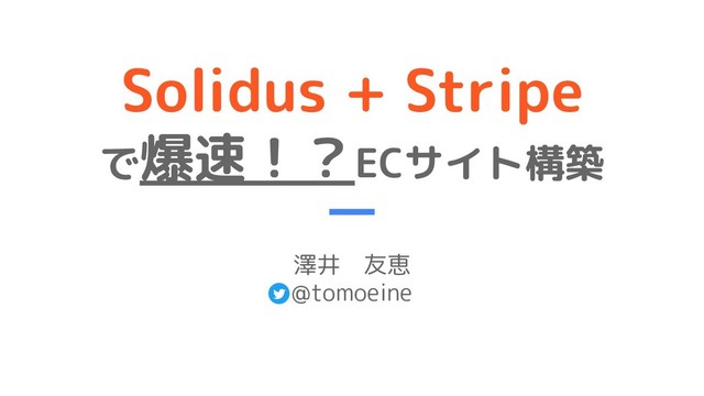 Solidus + Stripe で爆速!?ECサイト構築 澤井 友恵 @tomoeine