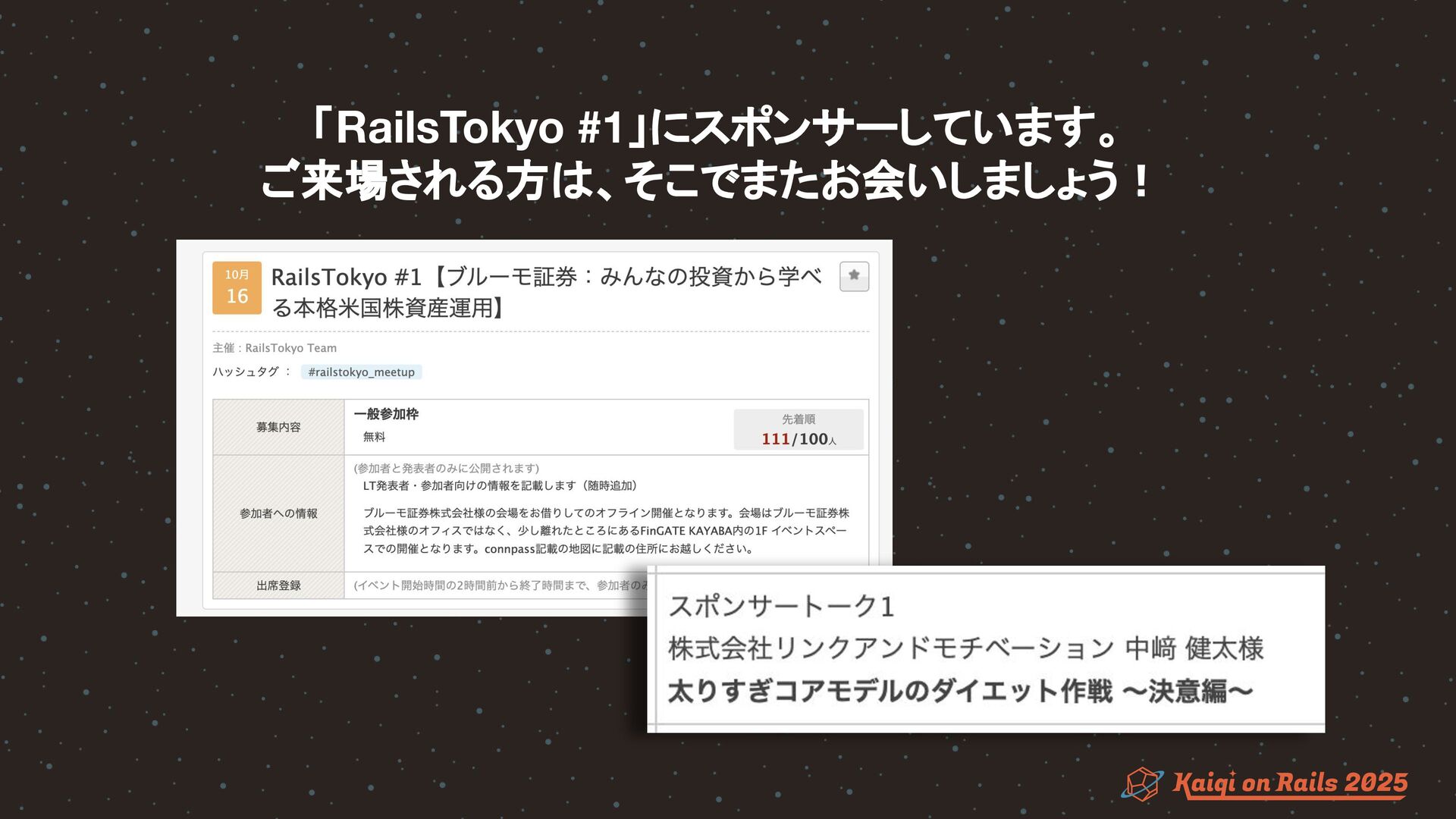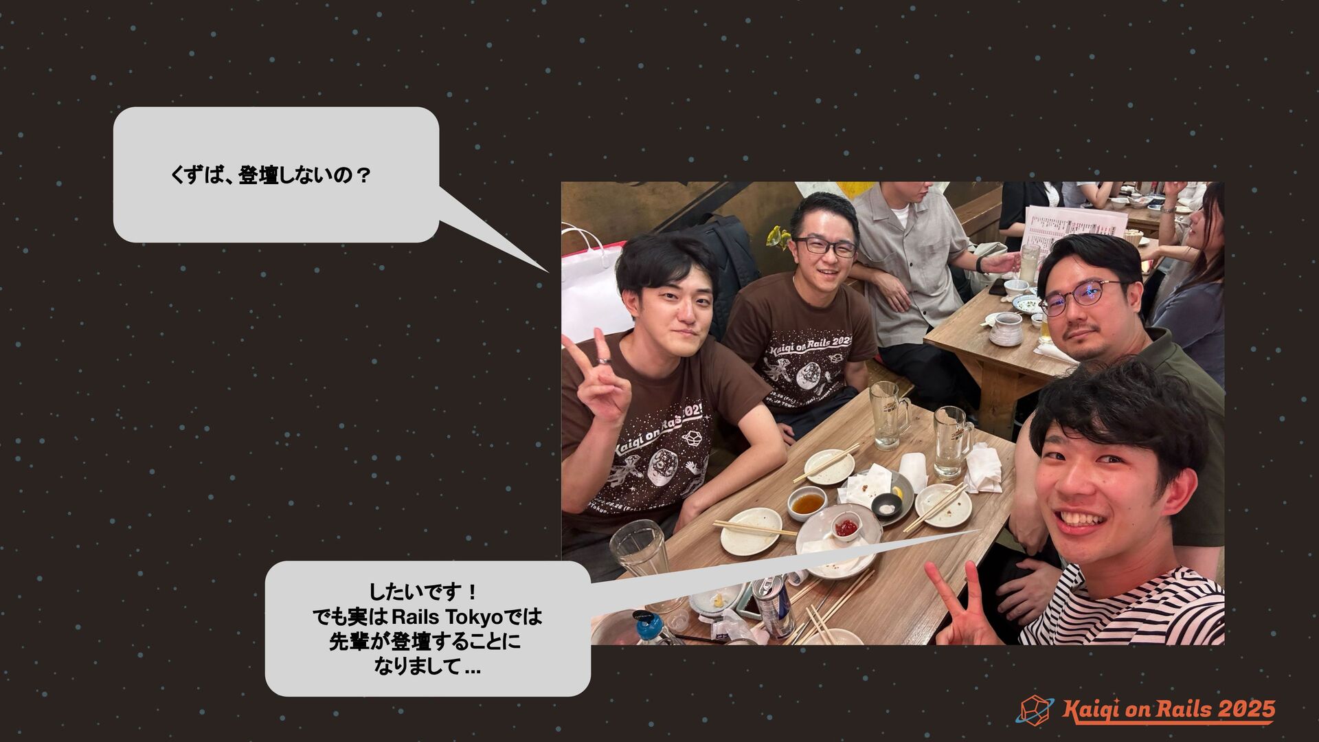 くず 、登壇しない ? したいです! でも実 Rails Tokyoで 先輩が登壇することに なりまして ...