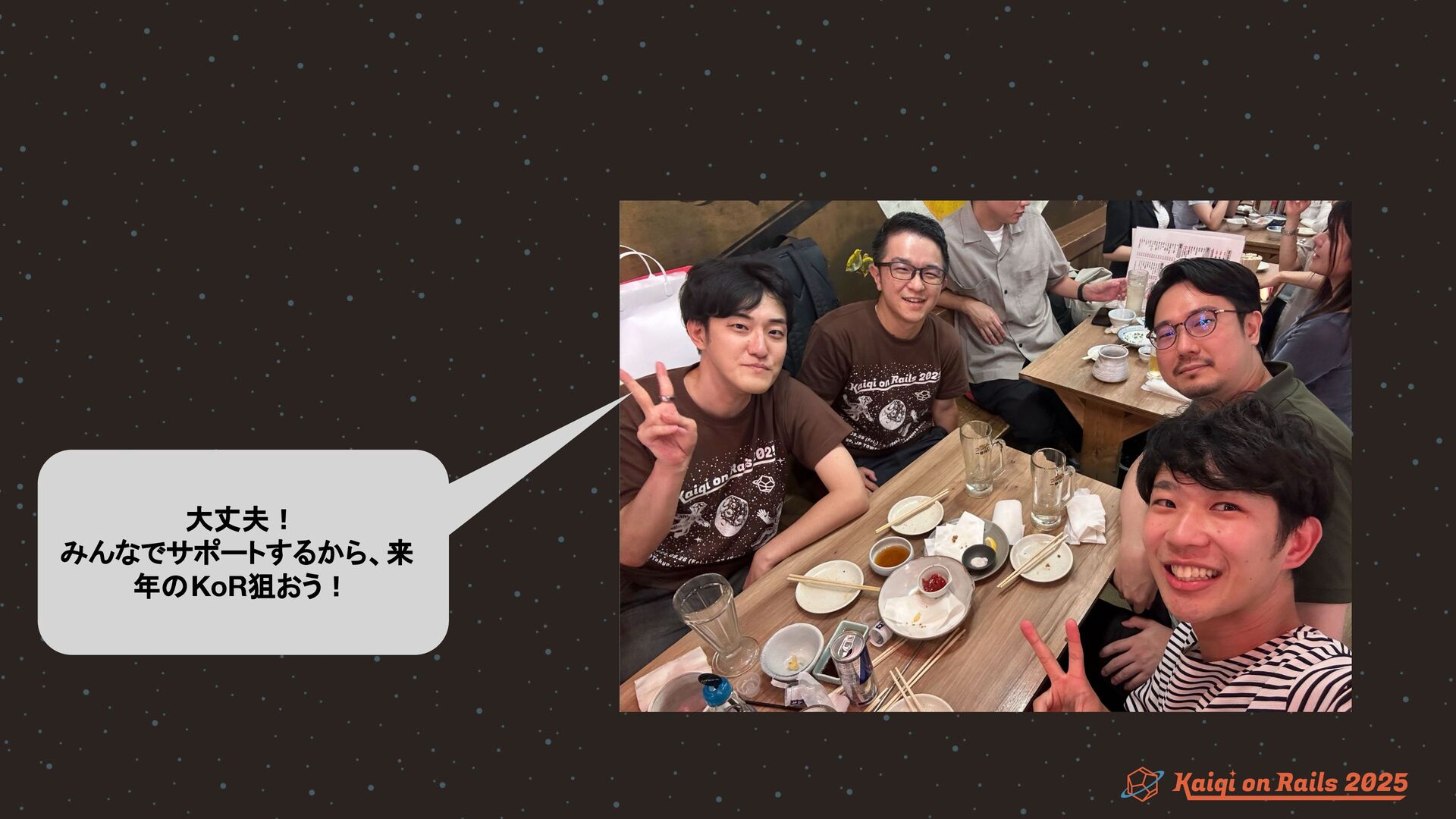 大丈夫! みんなでサポートするから、来 年 KoR狙おう!