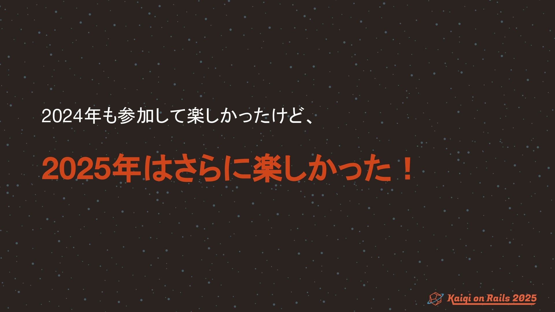 大きな目標を得た Kaigi on Rails 2025 くず @tomohiko9090