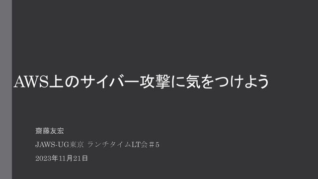 AWS上のサイバー攻撃に気をつけよう 齋藤友宏 JAWS-UG東京 ランチタイムLT会#5 2023年11月21日