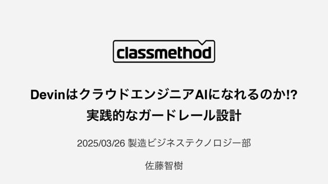 2025/03/26 ϏδωεςΫϊϩδʔ෦ ࠤ౻ஐथ DevinΫϥυΤϯδχΞAIʹͳΕΔͷ͔!? ࣮ફతͳΨʔυϨʔϧઃܭ