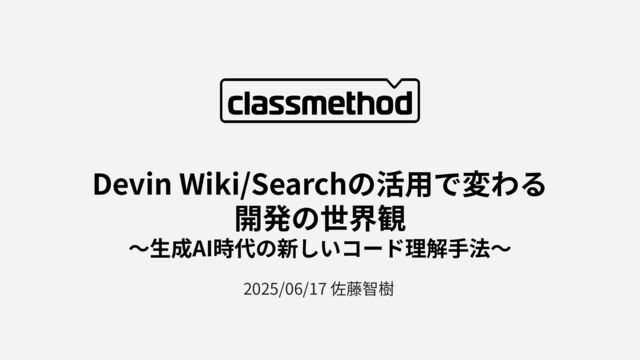 2025/06/17 佐藤智樹 Devin Wiki/Searchの活⽤で変わる 開発の世界観 〜⽣成AI時代の新しいコード理解⼿法〜