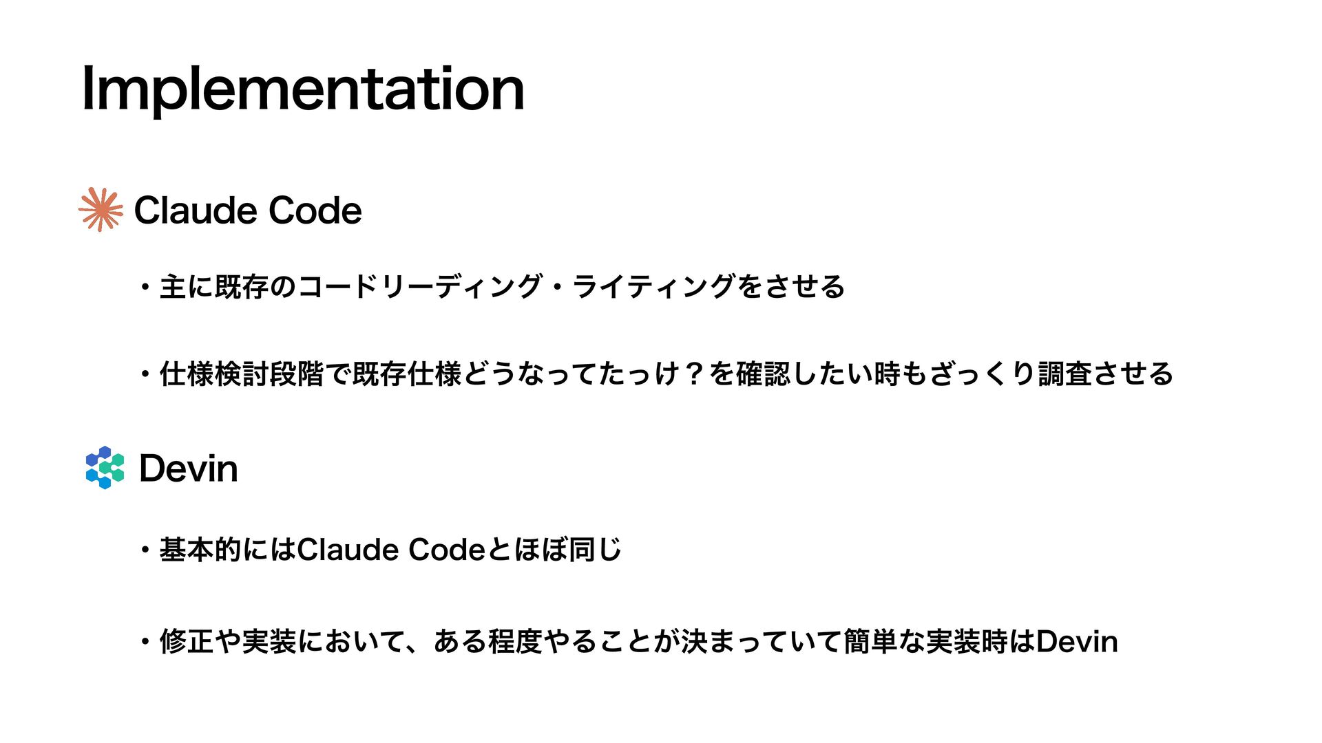 *NQMFNFOUBUJPO $MBVEF$PEF ɾओʹطଘͷίʔυϦʔσΟϯάɾϥΠςΟϯάΛͤ͞Δ ɾ༷ݕ౼ஈ֊Ͱطଘ༷Ͳ͏ͳ͚ͬͯͨͬʁΛ֬ೝ͍ͨ࣌ͬ͘͟͠Γௐࠪͤ͞Δ %FWJO ɾجຊతʹ$MBVEF$PEFͱ΄΅ಉ͡ ɾमਖ਼࣮ʹ͓͍ͯɺ͋ΔఔΔ͜ͱ͕ܾ·͍ͬͯͯ؆୯ͳ࣮࣌%FWJO
