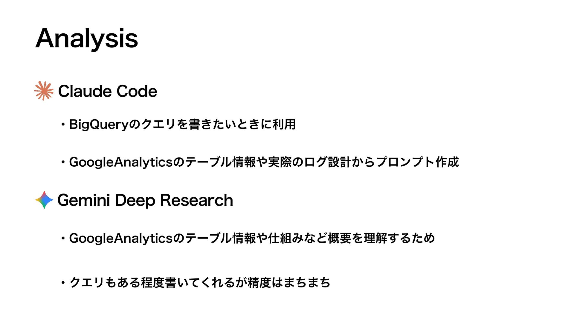 "OBMZTJT $MBVEF$PEF ɾ#JH2VFSZͷΫΤϦΛॻ͖͍ͨͱ͖ʹར༻ ɾ(PPHMF"OBMZUJDTͷςʔϒϧใ࣮ࡍͷϩάઃܭ͔Βϓϩϯϓτ࡞ ɾ(PPHMF"OBMZUJDTͷςʔϒϧใΈͳͲ֓ཁΛཧղ͢ΔͨΊ ɾΫΤϦ͋Δఔॻ͍ͯ͘ΕΔ͕ਫ਼·ͪ·ͪ (FNJOJ%FFQ3FTFBSDI