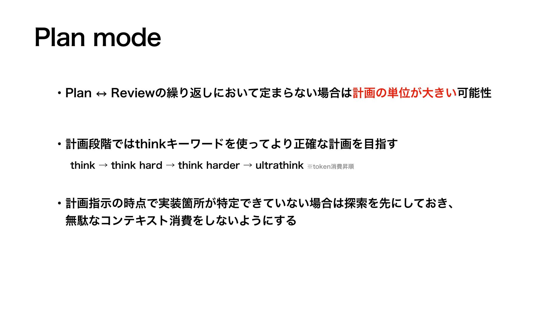 1MBONPEF ɾ1MBO ↔︎ 3FWJFXͷ܁Γฦ͠ʹ͓͍ͯఆ·Βͳ͍߹ܭըͷ୯Ґ͕େ͖͍Մೳੑ ɾܭըஈ֊ͰUIJOLΩʔϫʔυΛͬͯΑΓਖ਼֬ͳܭըΛࢦ͢ UIJOLˠUIJOLIBSEˠUIJOLIBSEFSˠVMUSBUIJOL˞UPLFOফඅঢॱ ɾܭըࢦࣔͷ࣌Ͱ࣮Օॴ͕ಛఆͰ͖͍ͯͳ͍߹୳ࡧΛઌʹ͓͖ͯ͠ɺ ɹແବͳίϯςΩετফඅΛ͠ͳ͍Α͏ʹ͢Δ