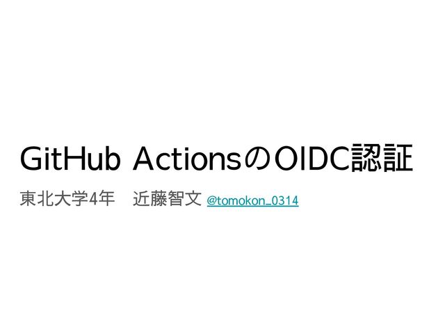 GitHub ActionsのOIDC認証 東北大学4年 近藤智文 @tomokon_0314