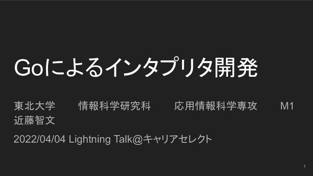 Goによるインタプリタ開発 東北大学 情報科学研究科 応用情報科学専攻 M1 近藤智文 2022/04/04 Lightning Talk@キャリアセレクト 1