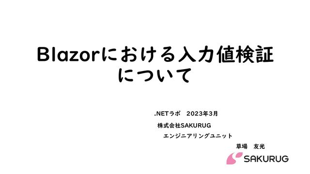 Blazorにおける入力値検証 について 株式会社SAKURUG エンジニアリングユニット 草場 友光 .NETラボ 2023年3月