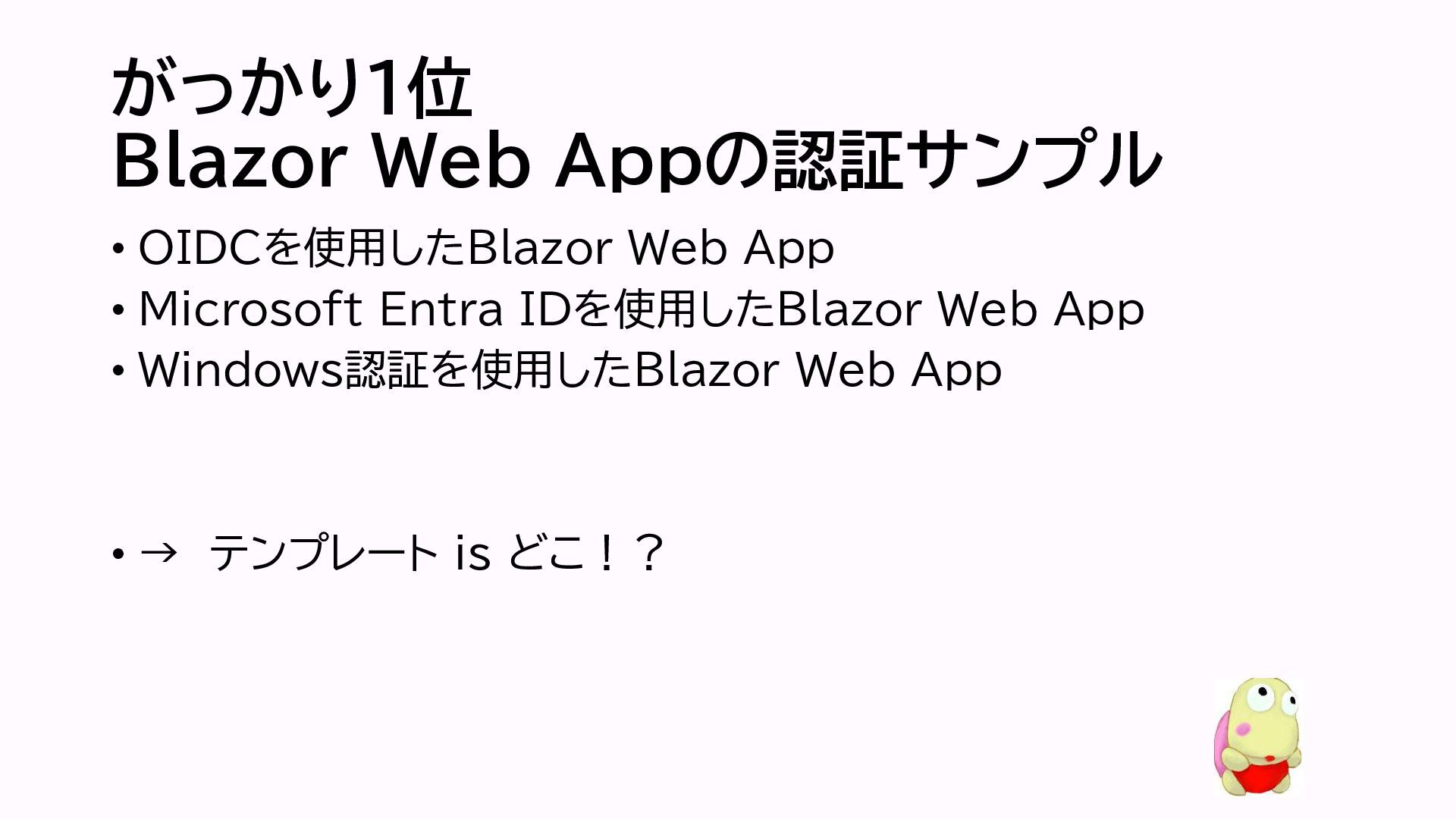 がっかり1位 Blazor Web Appの認証サンプル • OIDCを使用したBlazor Web App • Microsoft