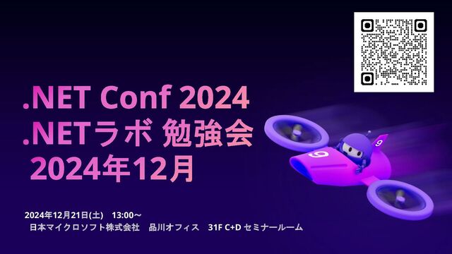 .NET Conf 2024 .NETラボ 勉強会 2024年12月 2024年12月21日(土) 13:00~ 日本マイクロソフト株式会社 品川オフィス