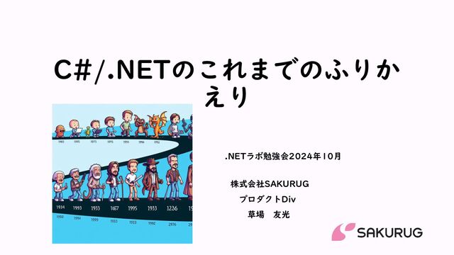 C#/.NETのこれまでのふりか えり 株式会社SAKURUG プロダクトDiv 草場 友光 .NETラボ勉強会2024年10月