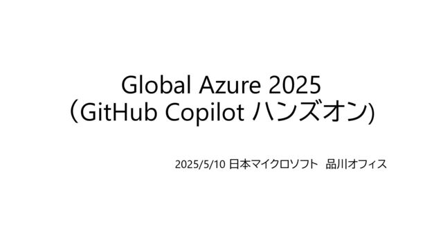 Global Azure 2025 (GitHub Copilot ハンズオン) 2025/5/10 日本マイクロソフト 品川オフィス