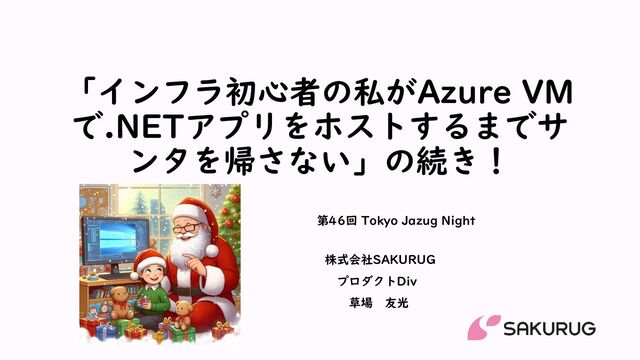 「インフラ初心者の私がAzure VMで.NETアプリをホストするまでサンタを帰さない」の続き! 第46回 Tokyo Jazug Night https://jazug.connpass.com/event/297642/