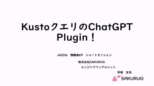 KustoクエリのChatGPT Plugin! 株式会社SAKURUG エンジニアリングユニット 草場 友光 JAZUG 懇親会LT ショートセッション