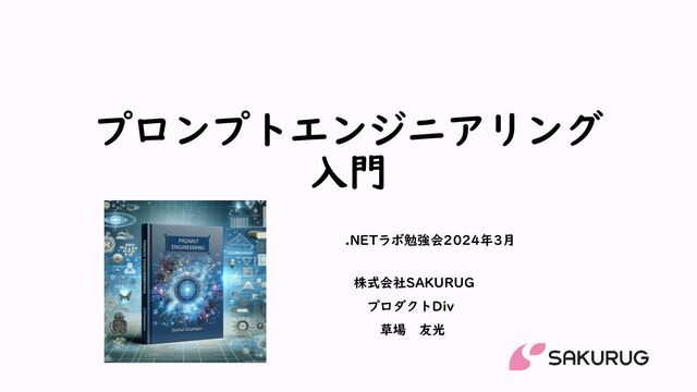 プロンプトエンジニアリング 入門 株式会社SAKURUG プロダクトDiv 草場 友光 .NETラボ勉強会2024年3月