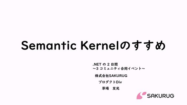 .NET の 2 日間 2024 冬 (1 日目) ~3 コミュニティ合同イベント~ Semantic Kernelのすすめ https://dotnet-communities.connpass.com/event/294588/