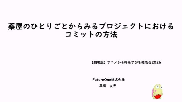 薬屋のひとりごとからみるプロジェクトにおけるコミットの方法 【劇場版】アニメから得た学びを発表会2026【懇親会】 https://engineers-anime.connpass.com/event/381501/