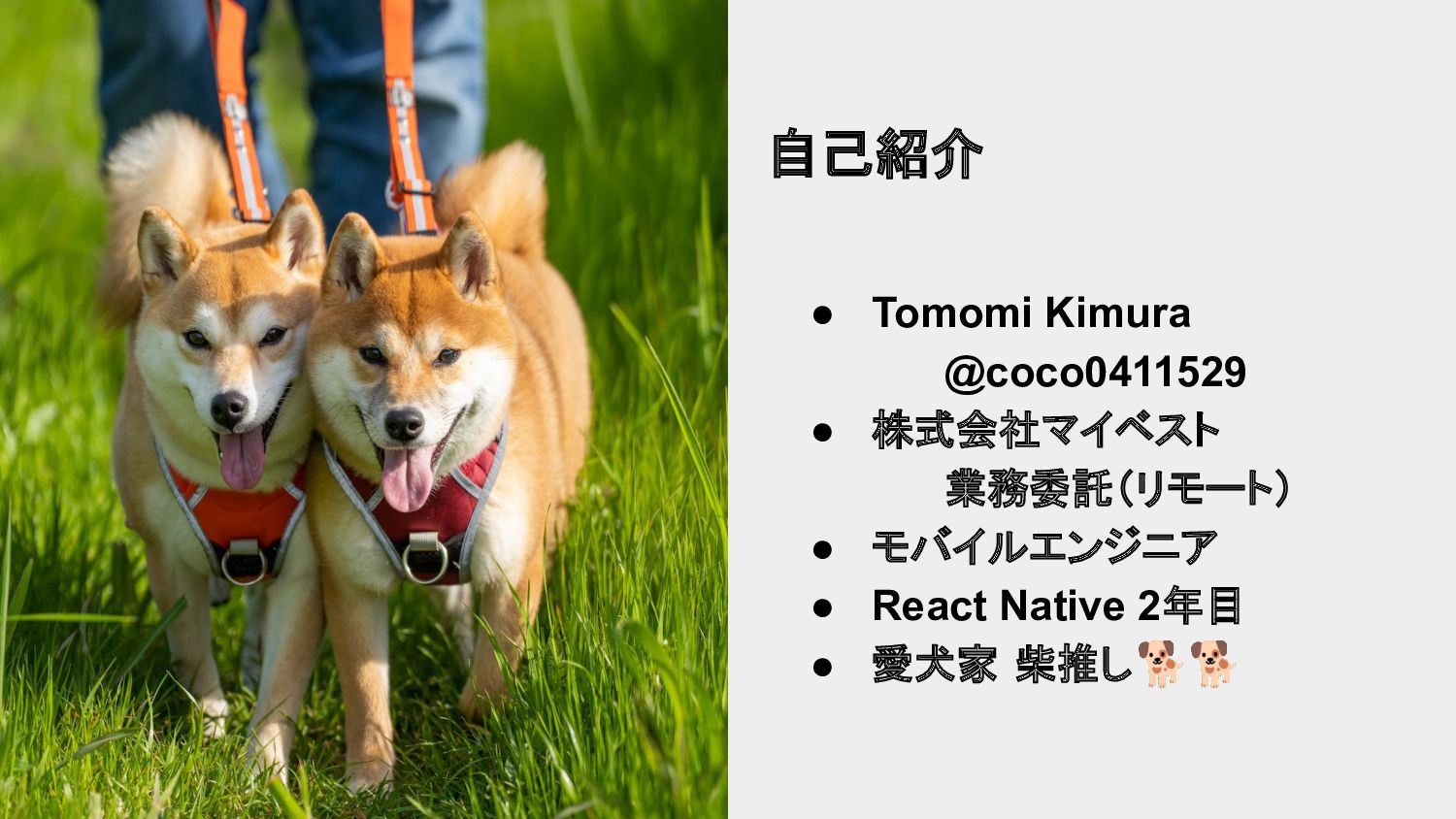 • React Native 2年目 • 愛犬家 柴推し🐕🐕 自己紹介