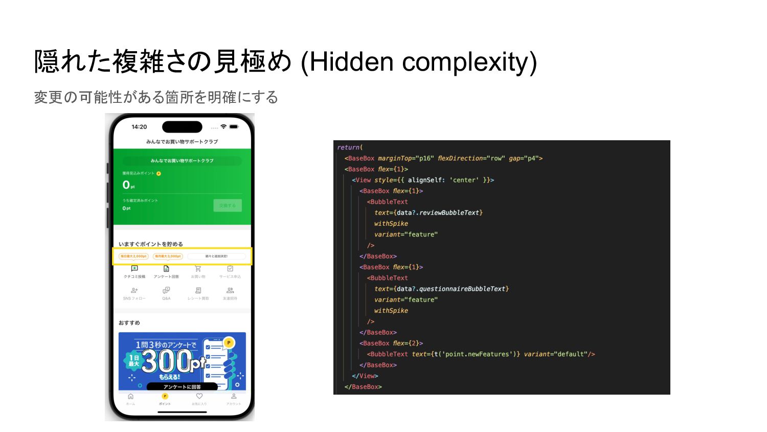隠れた複雑さの見極め (Hidden complexity) 変更の可能性がある箇所を明確にする