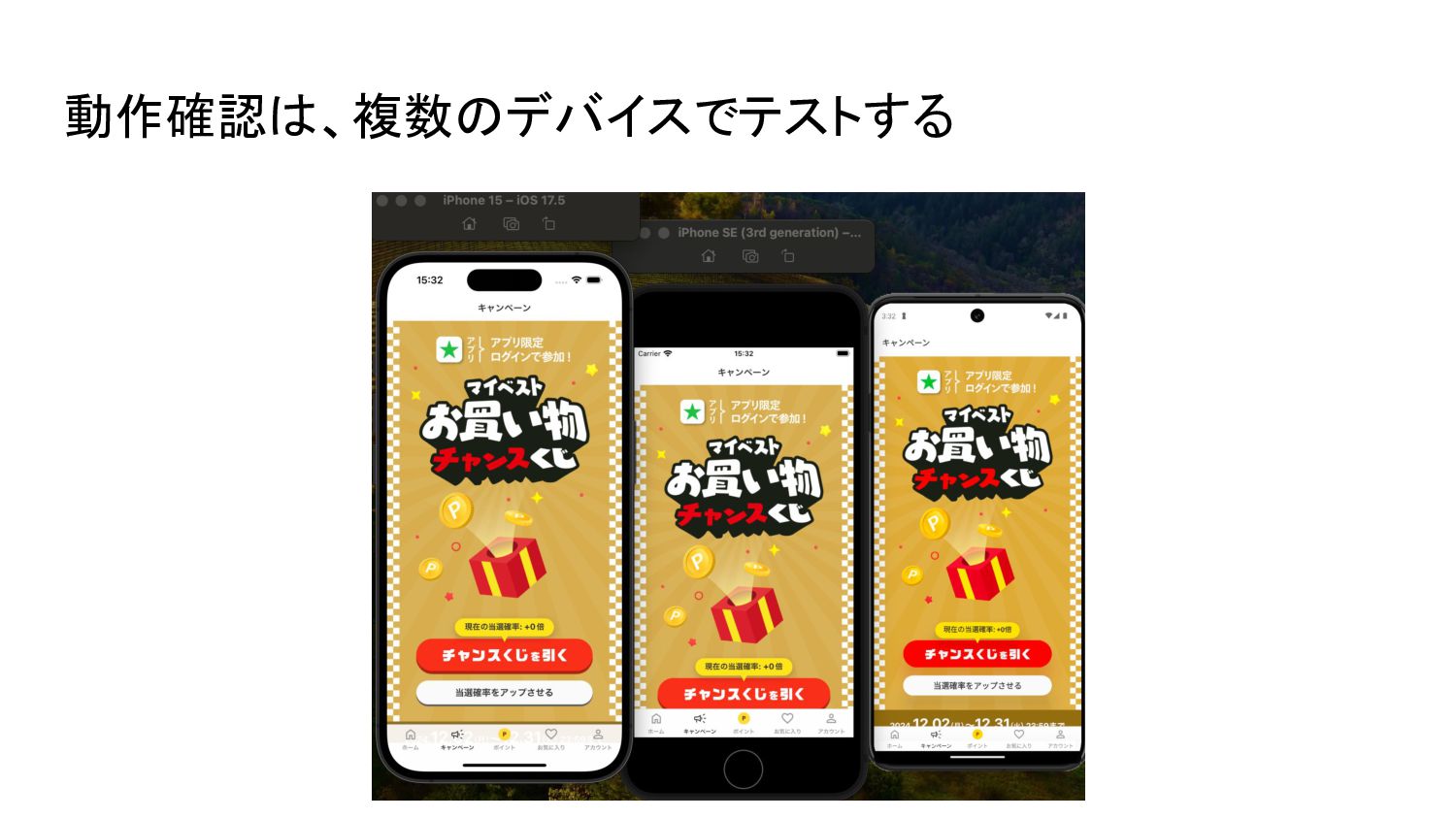 動作確認は、複数のデバイスでテストする