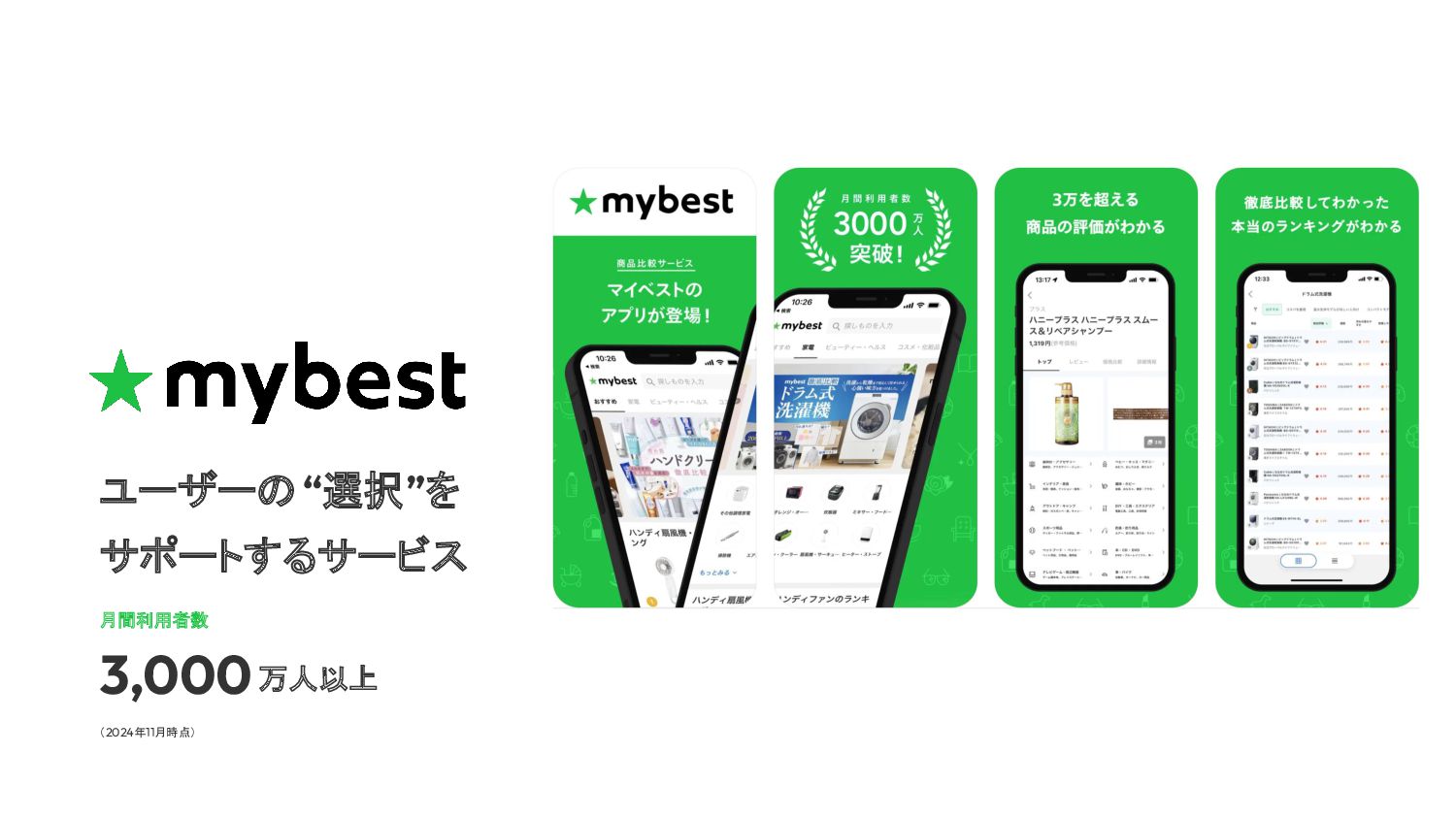 月間利用者数 3,000 ユーザーの “選択”を サポートするサービス 万人以上 (2024年11月時点)