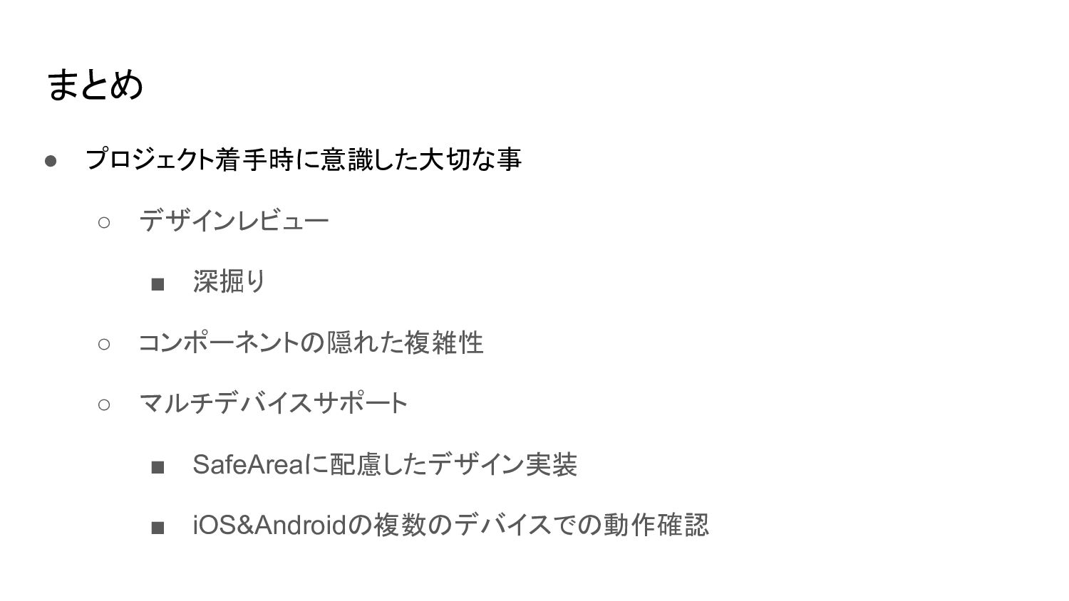 まとめ • プロジェクト着手時に意識した大切な事 ◦ デザインレビュー ▪ 深掘り ◦ コンポーネントの隠れた複雑性 ◦