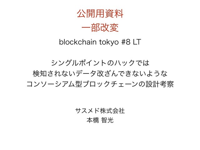 CMPDLDIBJOUPLZP-5 γϯάϧϙΠϯτͷϋοΫͰ ݕ͞Εͳ͍σʔλվ͟ΜͰ͖ͳ͍Α͏ͳ ίϯιʔγΞϜܕϒϩοΫνΣʔϯͷઃܭߟ αεϝυגࣜձࣾ ຊڮஐޫ ެ։༻ࢿྉ Ұ෦վม