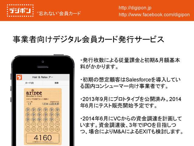 1174 [代表取締役] 池田公也 (イケダ ともn) E-mail: tomo@cleartouch.jp, Blog: http://ameblo.jp/tikeda4028 , Twitter: @itomonari カリフォルニア大学サンディエゴ校卒業。Jacobs School of Engineeringにてコンピューター サイエンスの学位を取得。住友商事株式会社が筆頭株主を勤める米テクノロジーベンチャー 日本法人に3年間勤務後、2006年7月に独立。以降、数社の国内スタートアップに技術担当者 として参画。2012年6月にWebサービス及びモバイルアプリ開発事業を目的としたクリアタッチ 株式会社を設立する。 [東京事務所] 東京都品川区西五反田 3-8-3 町原ビル 2F [株主構成] 池田公也 100% (2014年3月現在) 利用 [設立] 2012年6月1日 [主な事業] ソフトウエア開発 [運営会社] クリアタッチ株式会社 http://cleartouch.jp [本店所在地] 栃木県宇都宮市大谷町 1174 [代表取締役] 池田公也 (イケダトモナリ) E-mail: tomo@cleartouch.jp, Blog: http://ameblo.jp/tikeda4028 , Twitter: @itomonari カリフォルニア大学サンディエゴ校卒業。Jacobs School of Engineeringにてコンピューター サイエンスの学位を取得。住友商事株式会社が筆頭株主を勤める米テクノロジーベンチャー 日本法人に3年間勤務後、2006年7月に独立。以降、数社の国内スタートアップに技術担当者 として参画。2012年6月にWebサービス及びモバイルアプリ開発事業を目的としたクリアタッチ 株式会社を設立する。 [東京事務所] 東京都品川区西五反田 3-8-3 町原ビル 2F [株主構成] 池田 公也 100% (2014年3月現在) http://digipon.jp http://www.facebook.com/digipon