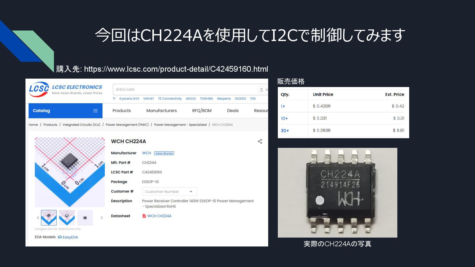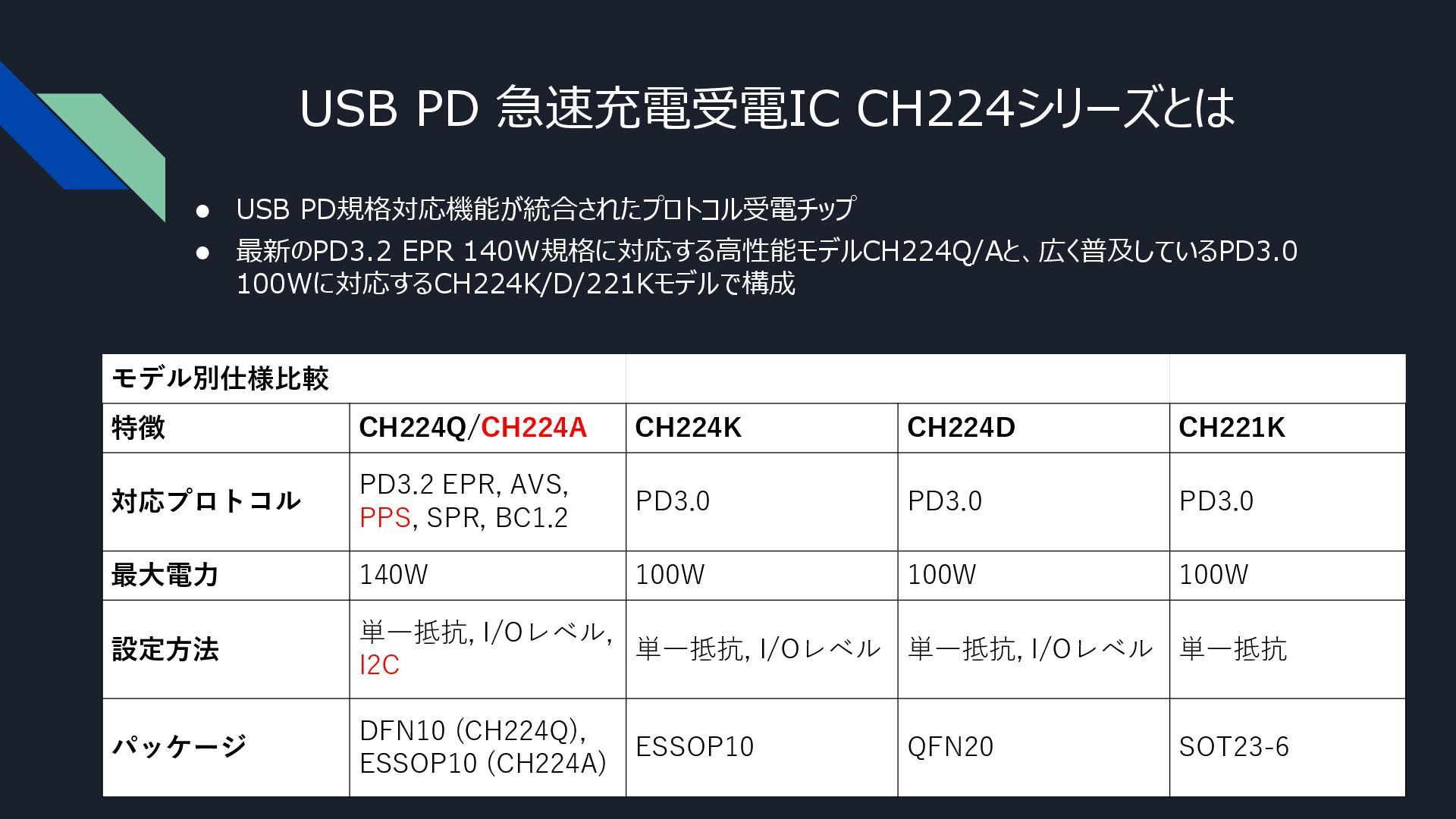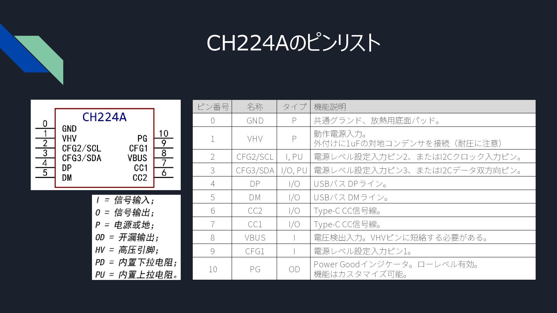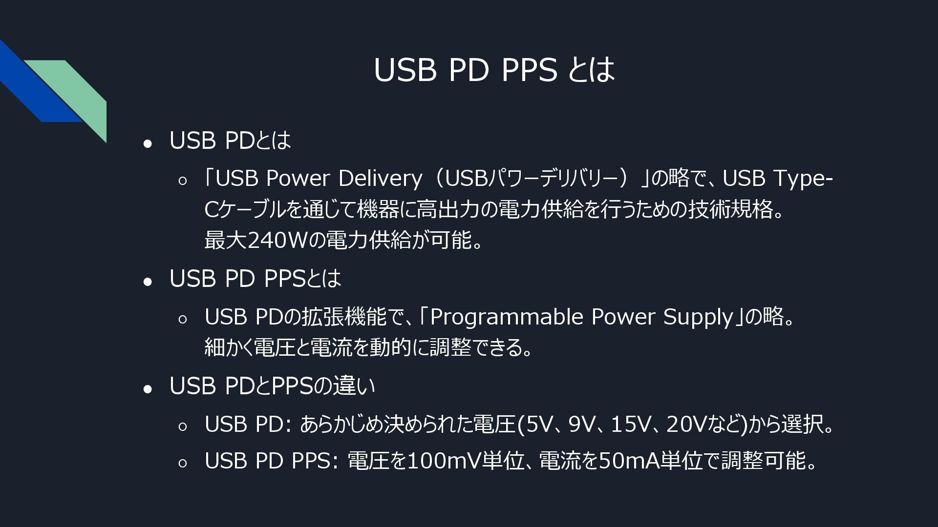 180, BLACK); // モード表示 M5.Display.setTextColor(YELLOW); M5.Display.setTextSize(2); if (ppsMode) { M5.Display.drawCentreString("Mode: PPS", 160, 50, 2); } else { M5.Display.drawCentreString("Mode: Fixed Voltage", 160, 50, 2); } // 電圧表示 M5.Display.setTextColor(GREEN); M5.Display.setTextSize(2); String voltageStr; if (ppsMode) { float voltage = currentPPSVoltage / 10.0; voltageStr = String(voltage, 1) + "V"; } else { voltageStr = String(fixedVoltages[currentFixedIndex]) + "V"; } M5.Display.drawCentreString(voltageStr, 160, 100, 4); // 電圧範囲表示(PPSモードのみ) if (ppsMode) { M5.Display.setTextColor(CYAN); M5.Display.setTextSize(2); String rangeStr = "Range: " + String(minPPSVoltage / 10.0, 1) + "V - " + String(maxPPSVoltage / 10.0, 1) + "V"; M5.Display.drawCentreString(rangeStr, 160, 160, 2); } M5Stack画面表示関連 M5Stack用に実装したコード例 M5Stack_CH224A_PPS.ino // ボタンラベル表示 drawButton(10, 220, 90, 20, "DOWN", BLUE); drawButton(115, 220, 90, 20, "MODE", ORANGE); drawButton(220, 220, 90, 20, "UP", BLUE); } // ボタンラベル描画 void drawButton(int x, int y, int w, int h, const char* label, uint16_t color) { M5.Display.fillRect(x, y, w, h, color); M5.Display.setTextColor(WHITE); M5.Display.setTextSize(1); int textX = x + w / 2; int textY = y + h / 2 - 8; M5.Display.drawCentreString(label, textX, textY, 2); }