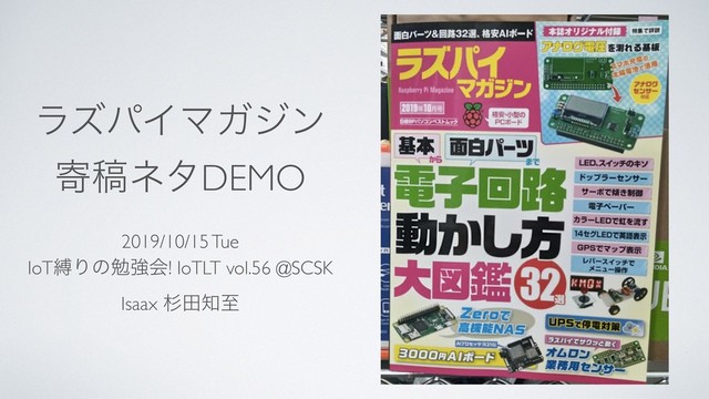 2019/10/15 Tue IoT縛りの勉強会! IoTLT vol.56 @SCSK 使ったデバイス ・オムロンの環境センサ評価ボード2JCIE-EV01-RP1 ・Raspberry Pi Zero WH