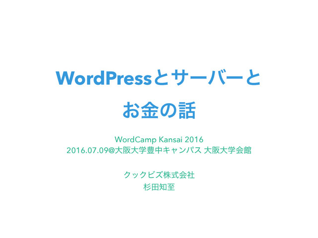 WordPressͱαʔόʔͱ ͓ۚͷ WordCamp Kansai 2016 2016.07.09@େࡕେֶ๛தΩϟϯύε େࡕେֶձؗ ΫοΫϏζגࣜձࣾ ਿాࢸ